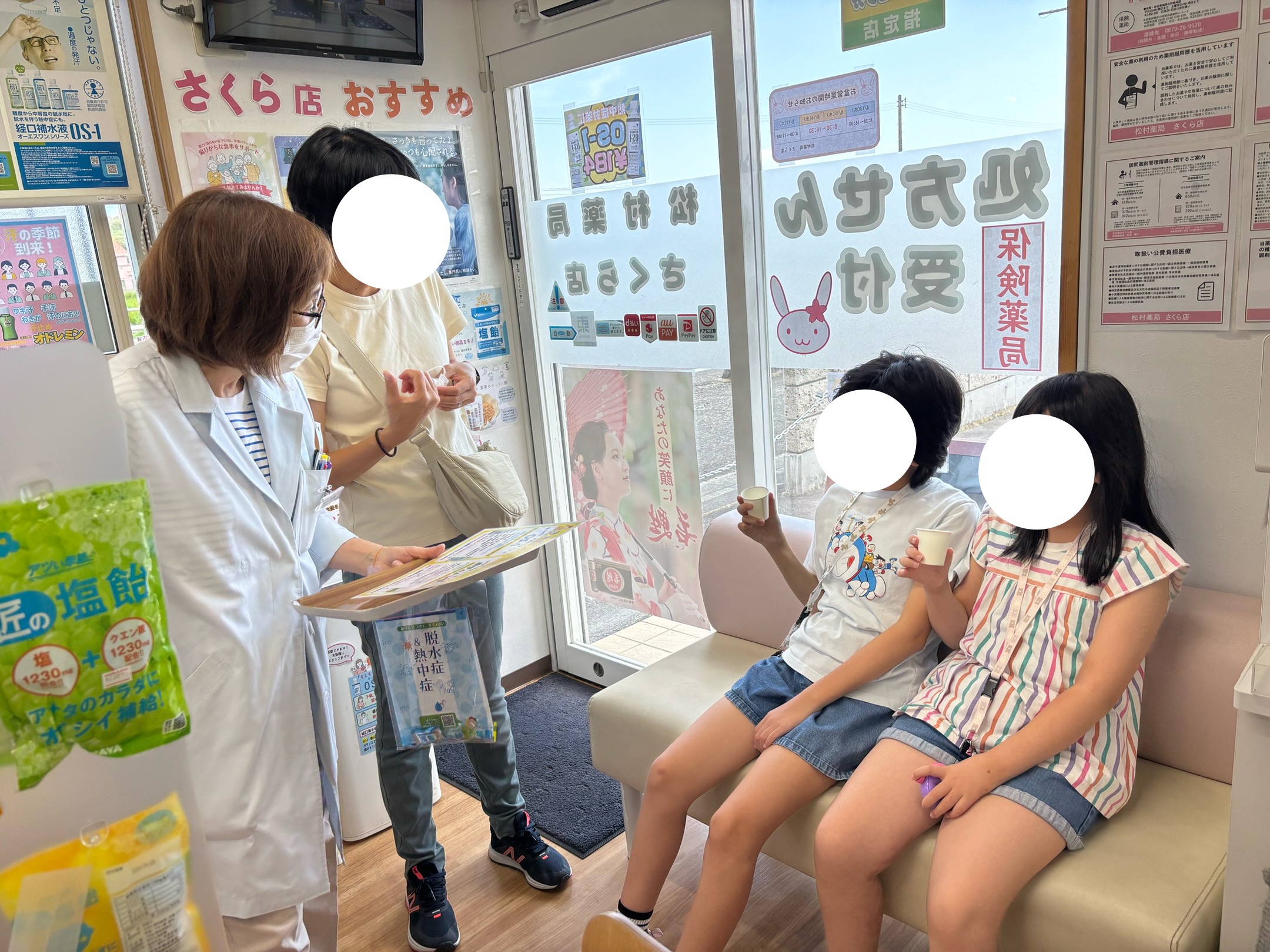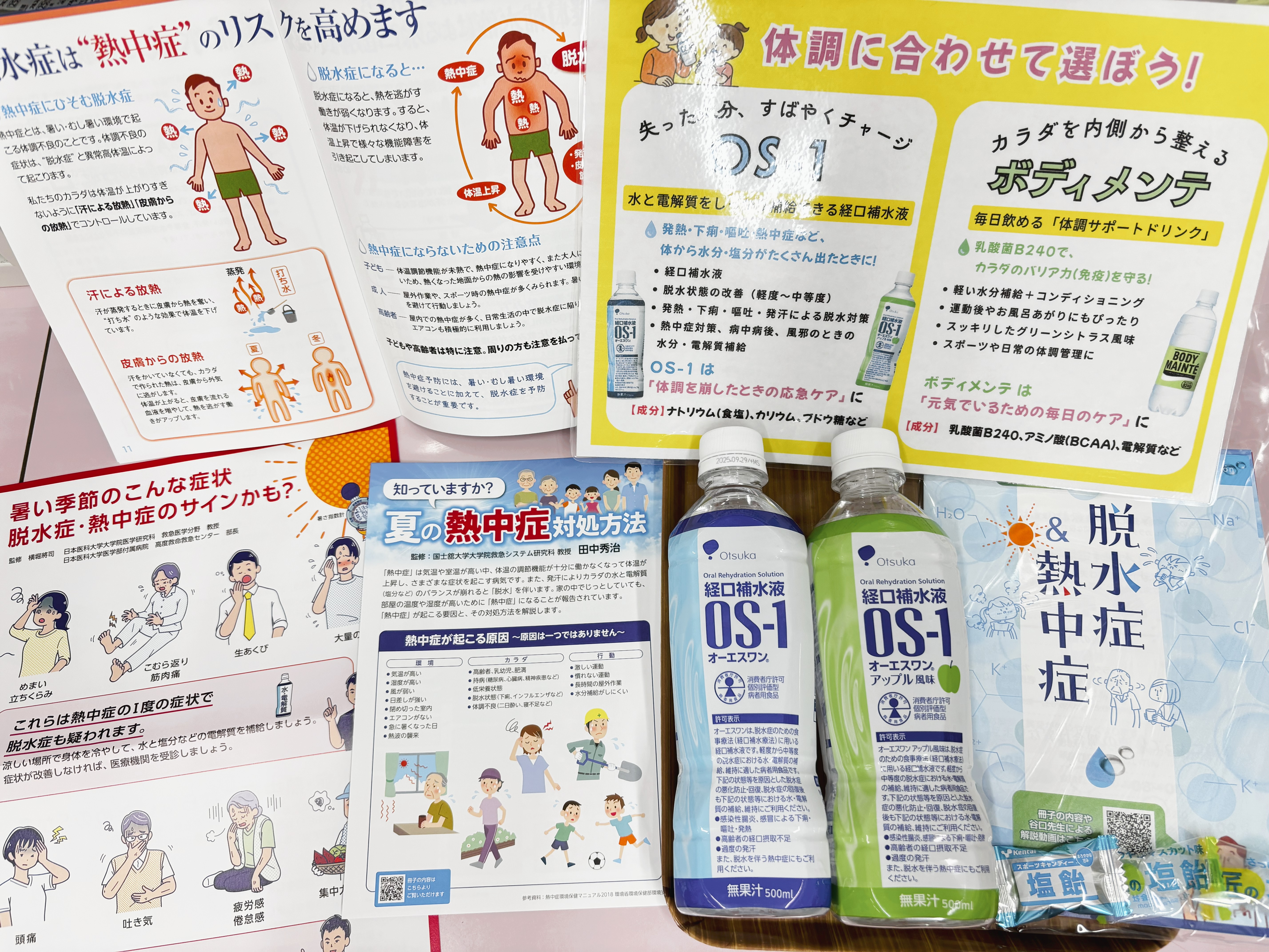 《さくら店》健康フェア 7月22日(火) 松村薬局さくら店にて熱中症・脱水症予防についての健康フェアを行いました。 OS-1とボディメンテの試飲をしていただき、 飲み分けや熱中症時の対処方法、日常の水分摂取のコツなどお話させていただきました。 まだまだ暑い日が続いていますが、屋外だけでなく室内でも予防をしっかりしていただき、 暑い夏を元気に乗り越えていきましょう!