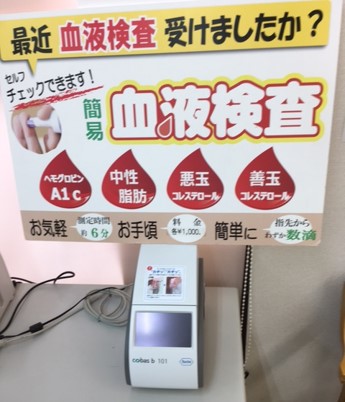 松村薬局では、検体測定室を設け、HbA1c、コレステロール(HDL、LDL、中性脂肪)の測定を行っています。結果の説明はもちろん、今後どのような生活習慣が必要になるのかの手助けもさせていただきます。普段、病院に受診していない方を主に対象としており、日頃の食生活や運動習慣の見直しのきっかけにしていただければと思います。現在は志度店と松原店で受けることができます。是非いらして下さい。