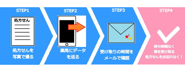 病院でもらった処方箋をアプリを通して写真撮影することにより、事前に薬を準備させていただくことが可能です。これにより待ち時間の短縮が可能となります。